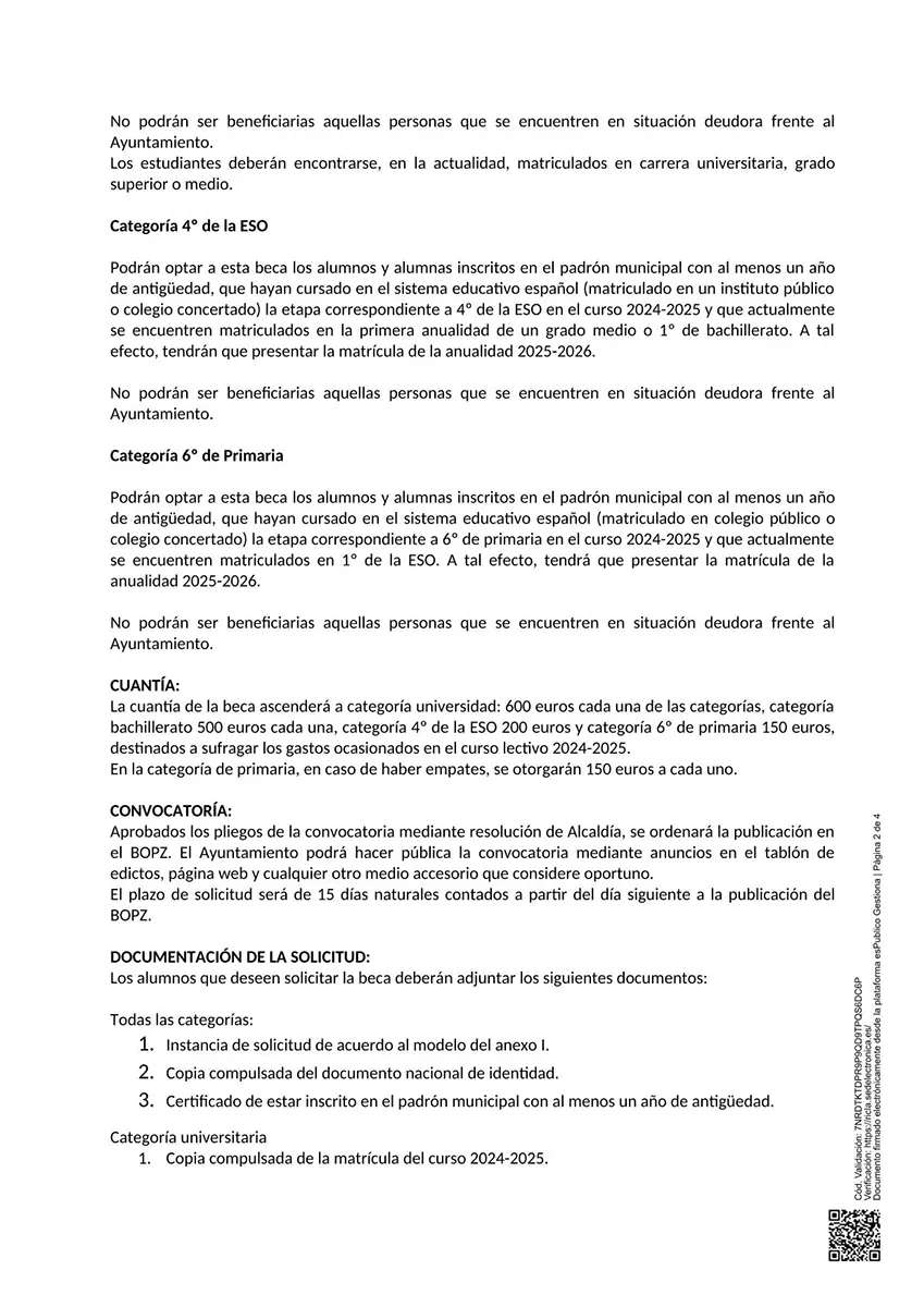 EL PLAZO DE PRESENTACIÓN DE SOLICITUDES SERÁ DE 15 DÍAS NATURALES A PARTIR DEL DÍA SIGUIENTE A SU PUBLICACIÓN EN EL BOPZ. (AÚN NO SE HA PUBLICADO).